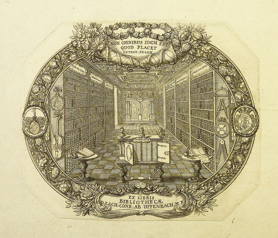 La libreria di Zacharias Konrad von Uffenbach Ex libris di Zacharias Konrad von Uffenbach (1683-1734), incisione di Johann Ulrich Krauss di Augsburg c.1705. fonte: flickr.com