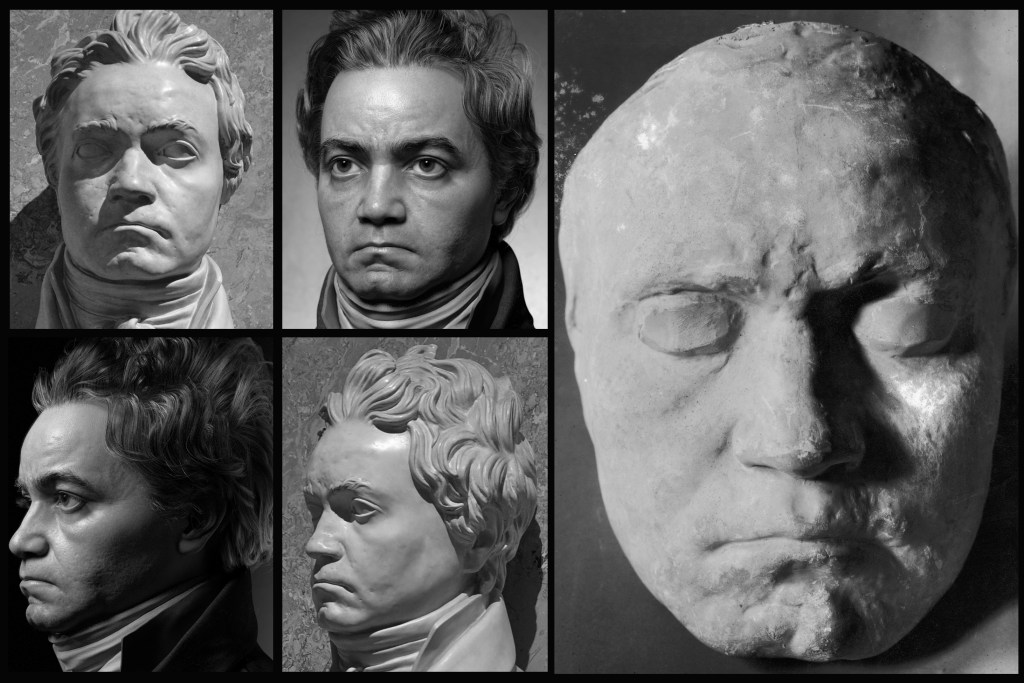 A sinistra Joseph Karl Stieler, 1820, Beethoven Haus, Bonn (il modello) a destra la scultura di Karimi