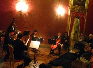 I prossimi appuntamenti sono dedicati alle colonne sonore (17/5), ai classici del punk (uno dei pezzi forti dell’ensemble) presentati da Alberto Campo (31/5), alle canzoncine per bambini con la voce recitante di Elena Castagnoli (7/6), alla musica di medioevo, rinascimento e barocco (21 giugno). Speciale è la lussuosa sede, non comune il fatto che il pubblico si possa accomodare, oltre che sulle sedie, su morbidi tappeti, informale la presentazione dei brani di Marco Robino (violoncello, direttore artistico, sue le trascrizioni). Ognuno degli appuntamenti, preceduti da una degustazione di vini, si svolge in un diverso spazio della dimora così da poter ogni volta apprezzare una diversa acustica. Annullata la distanza fra ascoltatore e interprete si crea la giusta alchimia.