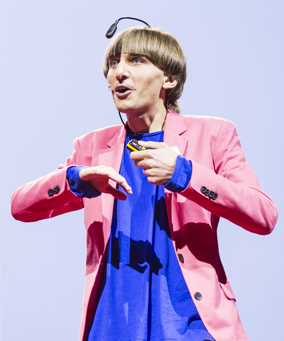 La storia di Neil Harbisson, nato a Belfast nel 1982, britannico di cittadinanza spagnola, sembra fantascienza. Harbisson è affetto da acromatopsia, non vede cioè i colori, ma una scala di grigi. Artista (dipinge e suona il pianoforte), nel 2002 s’iscrive al Dartington College of Arts, in Inghilterra, per studiare composizione. Lì incontra Adam Montandon, esperto di cibernetica. Colto da un’intuizione, Harbisson chiede a Montandon se possa aiutarlo a “sentire” i colori.